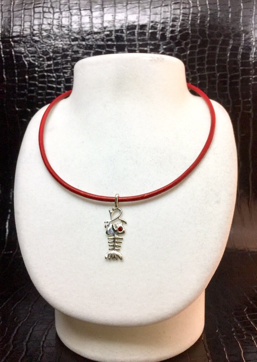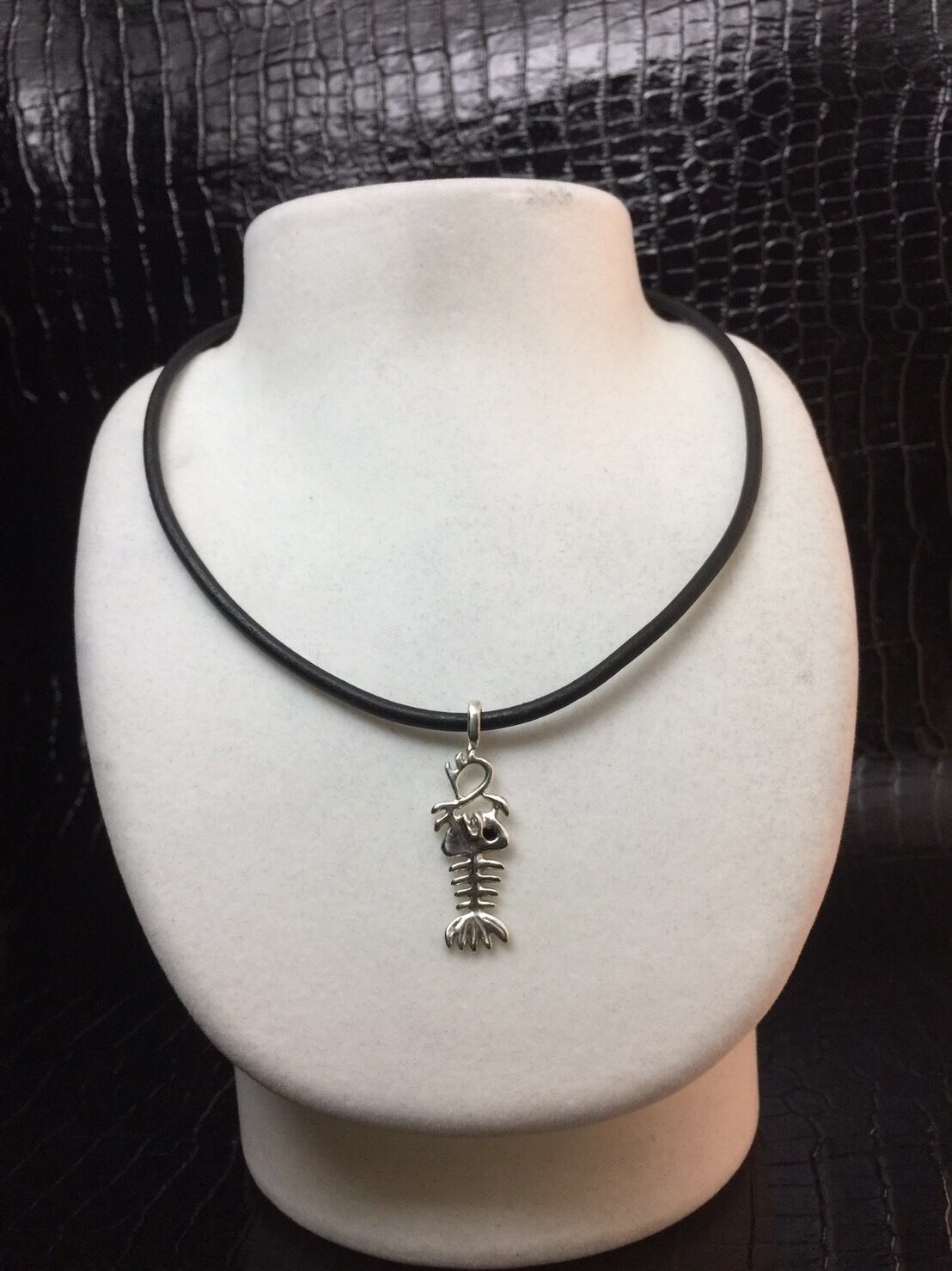 シルバー925と牛革を使った個性あふれるネックレスです。