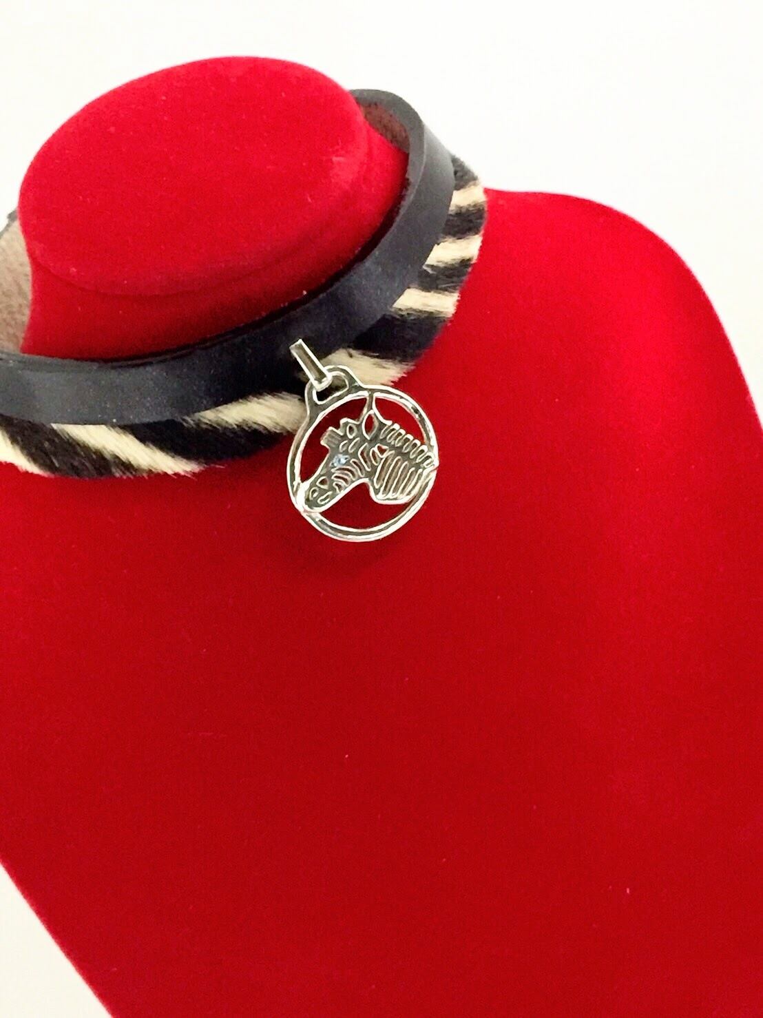 黒の牛革とゼブラ柄のハラコをコンビネーションにしたゴージャスなチョーカーです。