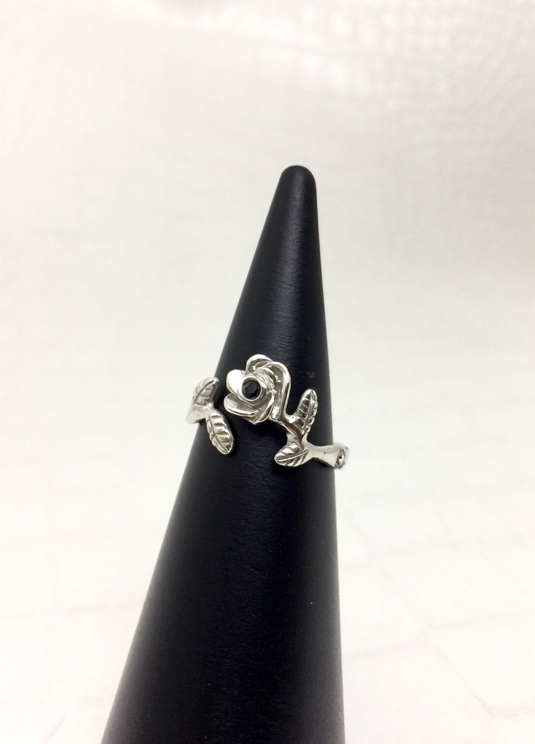 指にからまるように一輪の薔薇が可愛く咲いているリングです。