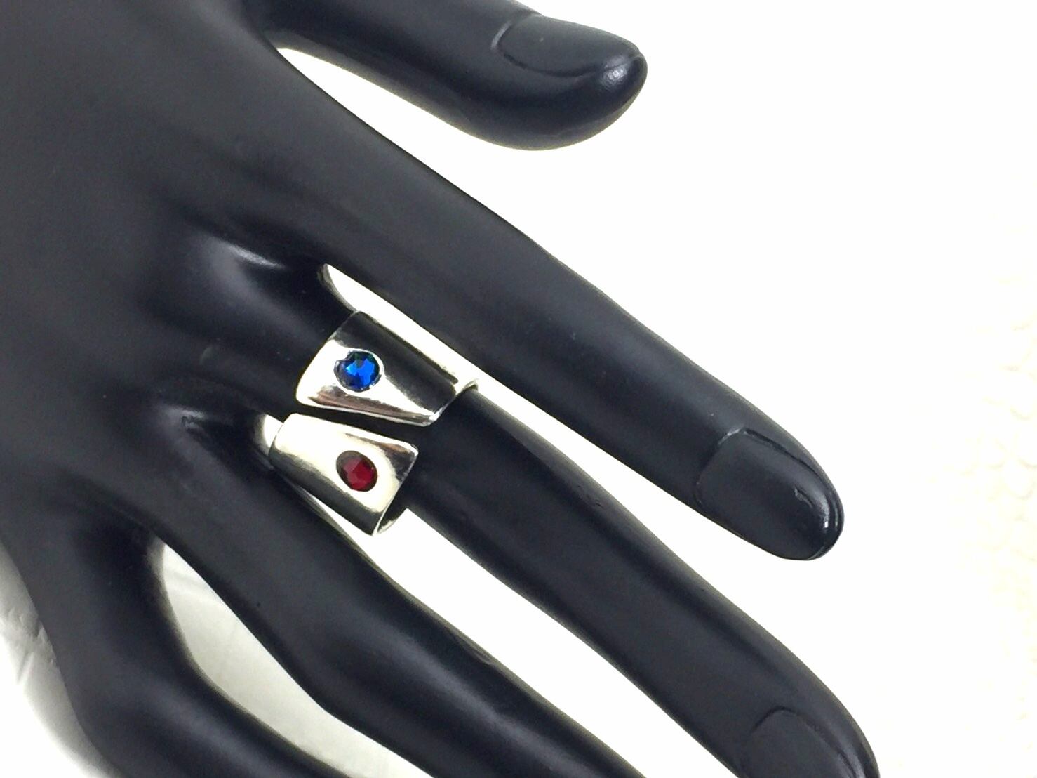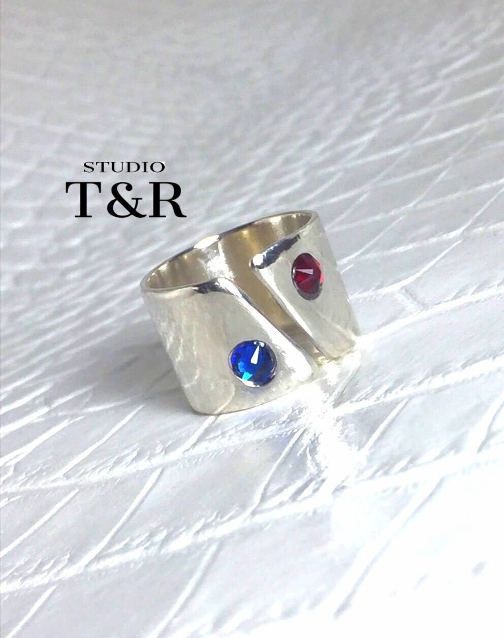 レッドとブルーのスワロフスキーの組み合わせが可愛いらしいリングです。